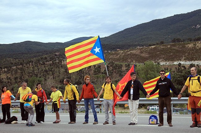 Miles de catalanes han unido sus manos para presionar a las autoridades y apoyar la celebración de un referéndum sobre la autodeterminación para el 2014.