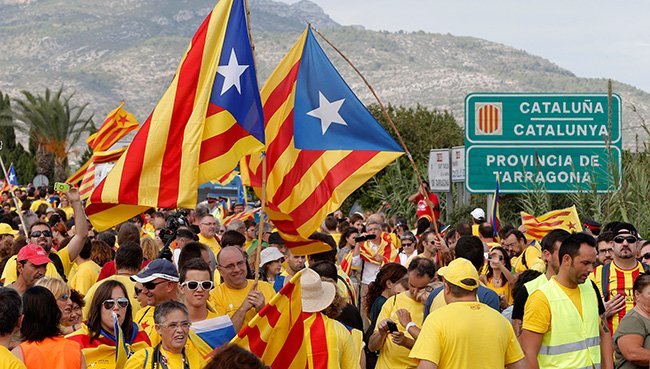 Video, fotos: Cadena humana de 400 km en Cataluña para 'desencadenarse' de España