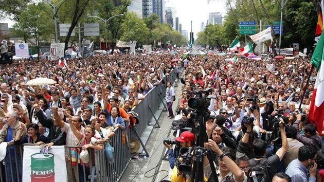 La muchedumbre, reunida por la izquierda mexicana, censuró también la subida de los impuestos y a la reforma educativa.