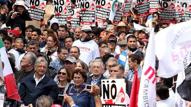 A la protesta asistió también el principal oponente político del actual mandatario, Andrés Manuel López Obrador, quien perdió las elecciones del año 2013 frente al candidato del Partido Revolucionario Institucional. El opositor instó a que las autoridades consulten al pueblo mexicano, a través de un referéndum, antes de someter la reforma del sector petrolero a una votación en el Congreso.