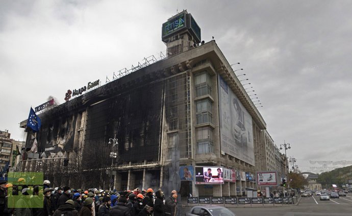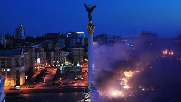 Las ruinas ennegrecidas dejadas en la Plaza de la Independencia por días de sangrientos disturbios que ya se han cobrado la vida de 82 personas, hacen que Kiev se parezca a un campo de batalla por primera vez desde la Segunda Guerra Mundial.