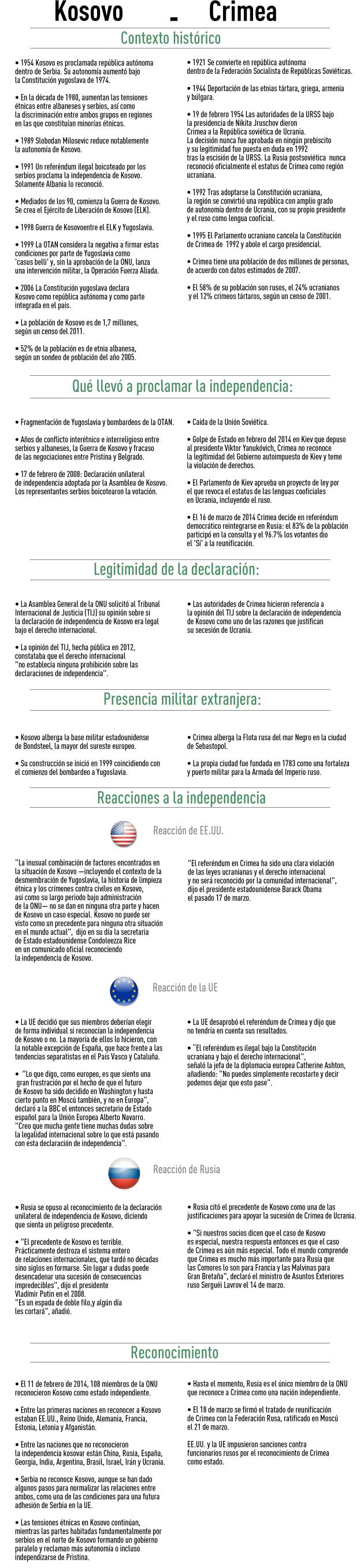 Hasta ahora Occidente se ha negado a legitimar la decisión de Crimea de salir de Ucrania. Sin embargo, Kosovo, que era una parte de Serbia, también se separó de su madre patria, siendo reconocida por EE.UU. y la mayoría de la UE.
