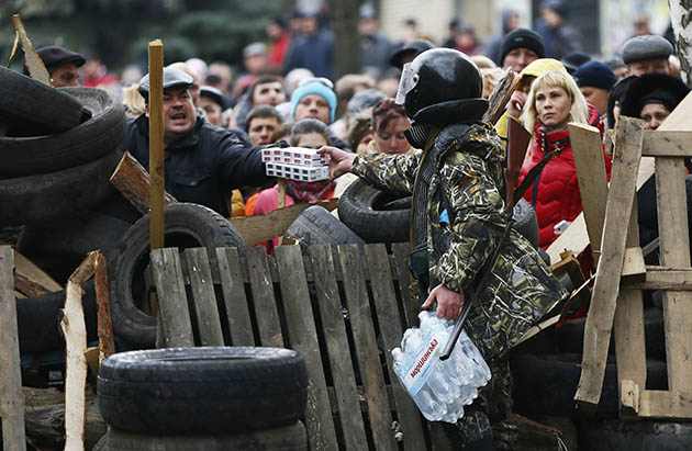 Varias ciudades de la región de Donetsk, que se ha proclamado República Popular, se han sumado a la revuelta contra el actual gobierno de Kiev. Los manifestantes salen a la calle y tratan de asaltar edificios administrativos.