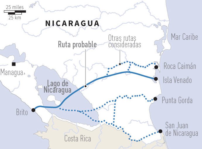 El Parlamento nicaragüense aprobó el 13 de junio dos leyes que ceden a la compañía china la construcción del canal y su administración durante los próximos cien años. La infraestructura incluiría una vía húmeda y otra seca, dos puertos de aguas profundas y dos aeropuertos internacionales.